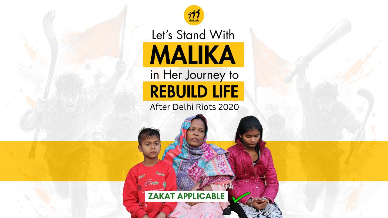 Successful Current₹1.4 lakh100%Target₹1.4 lakh Successful Malika Let’s Stand With Malika in Her Journey to Rebuild Life After Delhi Riots 2020 “They beat him and struck his head with iron rods. He kept pleading for mercy until… bymiles2smile2 Current₹1.4 lakh100%Target₹1.4 lakh Successful Current₹8.02 lakh160%Target₹5 lakh Successful Aamir Let’s Help Aamir’s Family Rebuild Their Life After His Brutal Mob Lynching A single night was all it took for a man to be reduced to a headline,… bymiles2smile2 Current₹8.02 lakh160%Target₹5 lakh Successful Current₹1.2 lakh100%Target₹1.2 lakh Successful Nazish Let’s Stand With Nazish in Her Journey to Rebuild a Livelihood Horror, havoc, screams, and bloodshed. These are the vivid memories of the Delhi Riots 2020, imprinted… bymiles2smile2 Current₹1.2 lakh100%Target₹1.2 lakh Unsuccessful Current₹2.38 lakh50%Target₹4.8 lakh Unsuccessful Support Backbone The Backbone of Compassion : Help us sustain vital field operations for suffering families. At Miles2Smile, relief and rehabilitation work frequently takes us to places far away from cities —… bymiles2smile2 Current₹2.38 lakh50%Target₹4.8 lakh Successful Current₹2 lakh100%Target₹2 lakh Successful Rabiya Let’s Help Rabiya Bi Rebuild Her Life after Her Husband’s Killing “The shadow of their father has been lifted from my children’s heads. How will I raise… bymiles2smile2 Current₹2 lakh100%Target₹2 lakh Unsuccessful Current₹17.83 lakh64%Target₹27.92 lakh Unsuccessful Relief School 2026 Lets Ensure Education for Kids affected by Delhi Riots 2020 ZAKAT APPLICABLE Originally founded nearly five years ago to provide education to the child survivors of… bymiles2smile2 Current₹17.83 lakh64%Target₹27.92 lakh 1 2 3 … 12 Next »